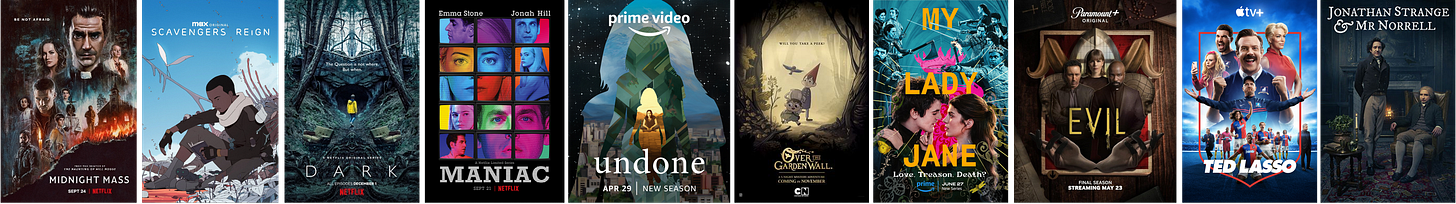 Ted Lasso (2020-2023) created by Bill Lawrence, Jason Sudeikis, Brendan Hunt & Joe Kelly | We debated including this one on here because we thought everyone must have heard of this but K says none of the kids in the undergrad composition class he’s teaching have, so…kids in composition classes and everyone else – this is a beautifully joyful show about trauma, forgiveness, and oh yeah a bit of “football”. Sincerity at its finest.