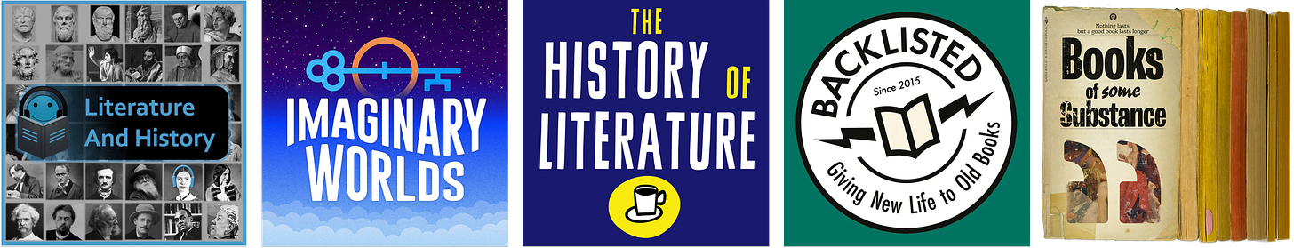 Books of Some Substance (2014-present) hosted by David Southard, Nick Scandy, & Nathan Sharp | Notable episodes have covered books like The Brothers Karamazov, One Hundred Years of Solitude, and Gravity’s Rainbow but even the books you might not have heard about are worth learning about through these wonderful hosts who never really flounder around much (can be pretty rare in podcasters, hah!)